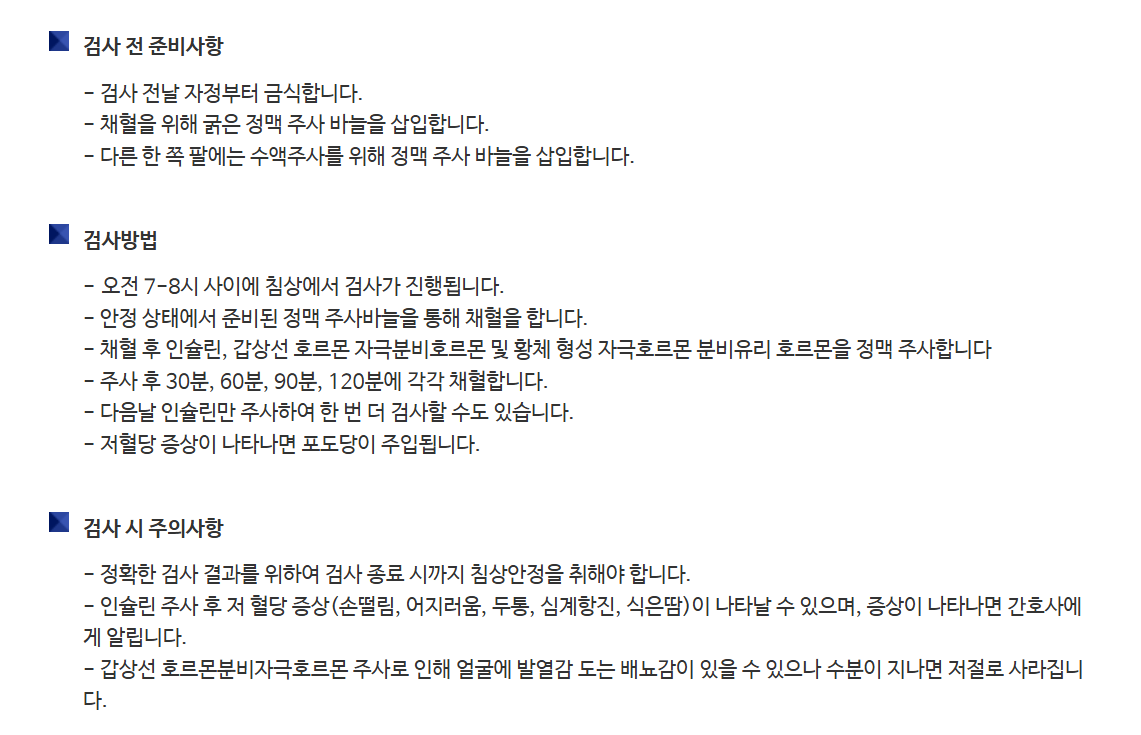 인슐린, 혈당, 지질 검사 등 일부 호르몬 검사는 8~12시간 금식이 필요합니다.