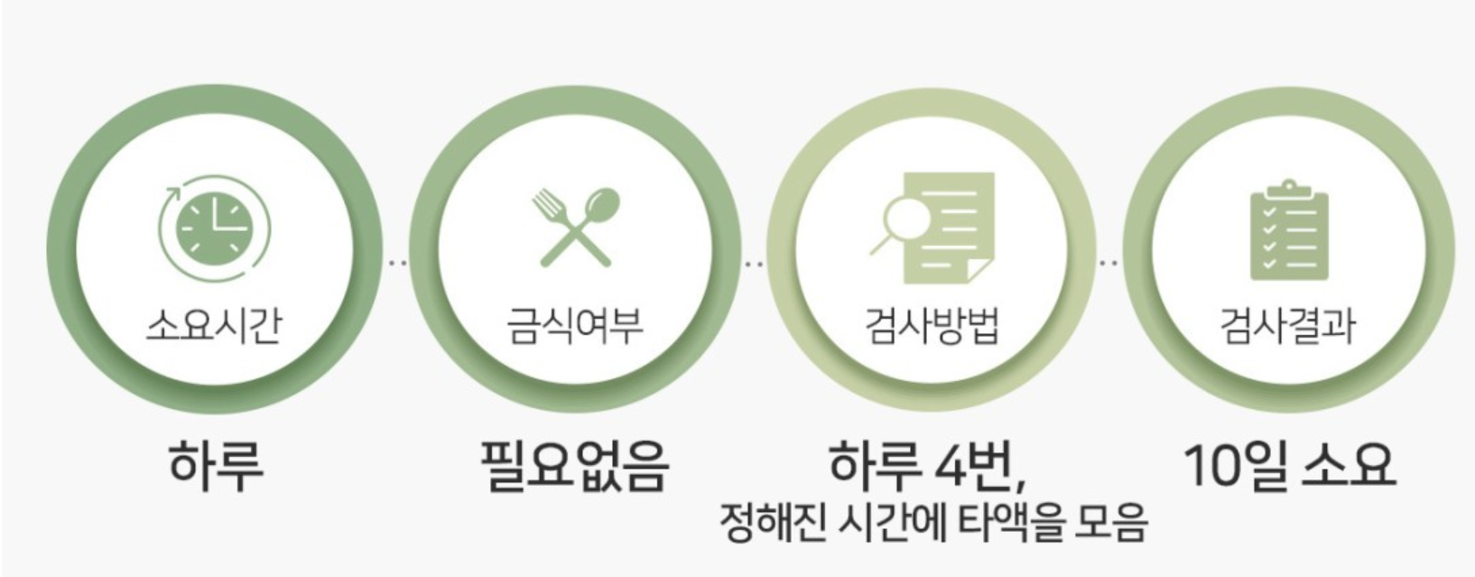 24시간 동안 꼼꼼하게 소변을 모아야 한다는 번거로움이 있지만, 장기적인 호르몬 변화를 확인하고 싶다면 소변 검사가 제격입니다!